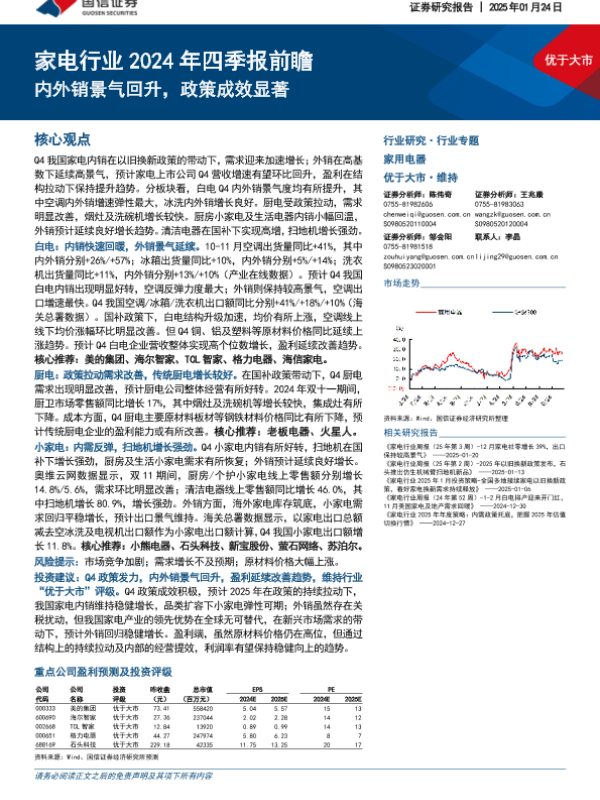 【国信证券】【20250124】家电行业2024年四季报前瞻:内外销景气回升,政策成效显著-19页 行业研究
