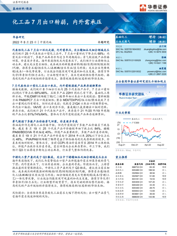 【华泰证券】【20220823】基础材料行业专题研究:化工品7月出口转弱,内外需承压-10页 行业研究