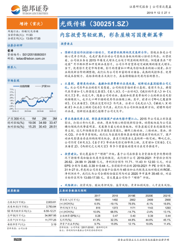 【德邦证券】【20191227】内容投资驾轻就熟,彩条屋续写国漫新篇章-25页 证券期货研究报告