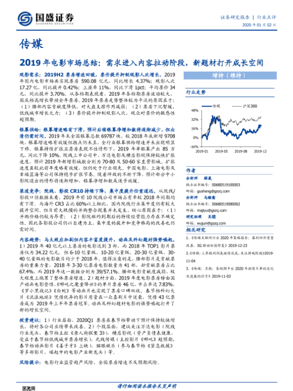 【国盛证券】【20200102】2019年电影市场总结:需求进入内容拉动阶段,新题材打开成长空间-12页 行业研究