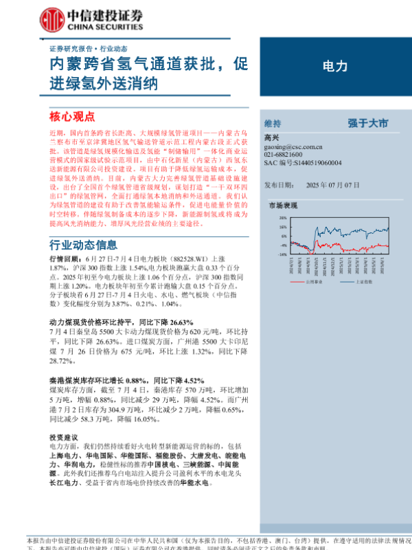 【中信建投证券】【20250707】内蒙跨省氢气通道获批,促进绿氢外送消纳-15页 行业研究