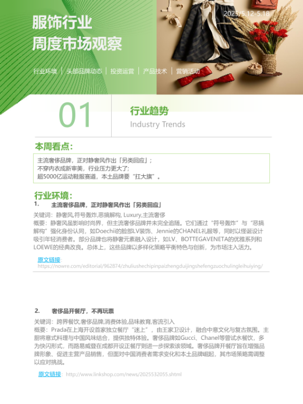 【艾瑞咨询】【20250519】iR-2025年第21周-服饰行业周度市场观察-6页 行业研究