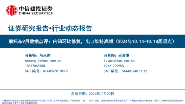 【中信建投证券】【20241020】摩托车行业9月数据点评:内销环比修复,出口维持高增-26页 行业研究