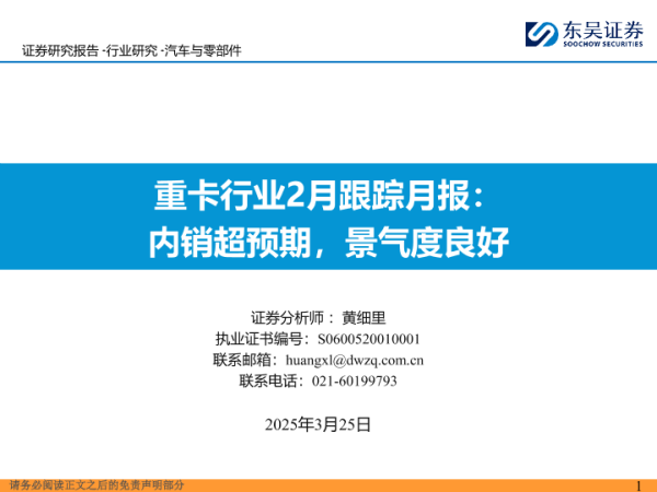 【东吴证券】【20250325】重卡行业2月跟踪月报:内销超预期,景气度良好-30页 行业研究