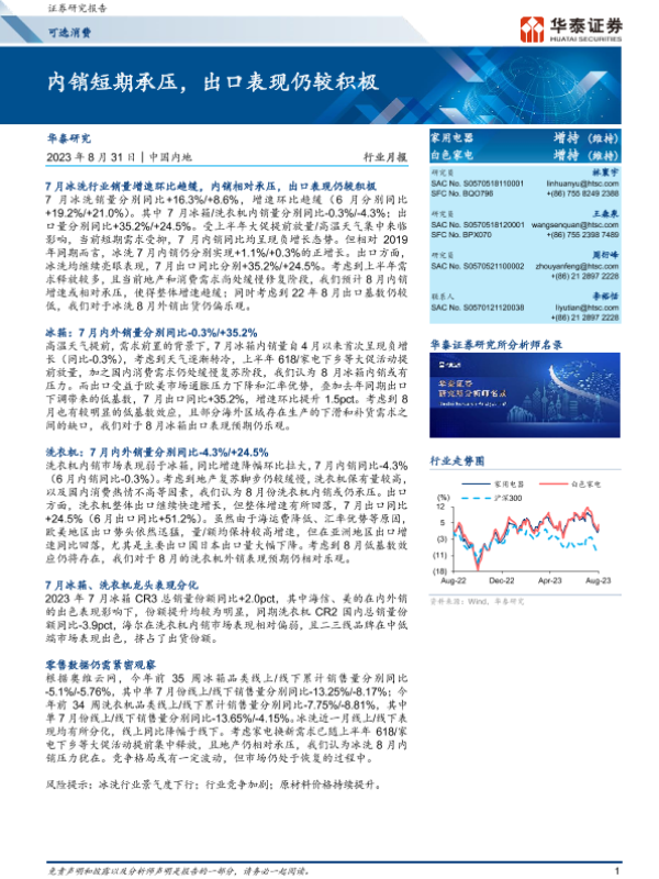 【华泰证券】【20230831】20230831-华泰证券-可选消费行业月报:内销短期承压,出口表现仍较积极-16页 行业研究
