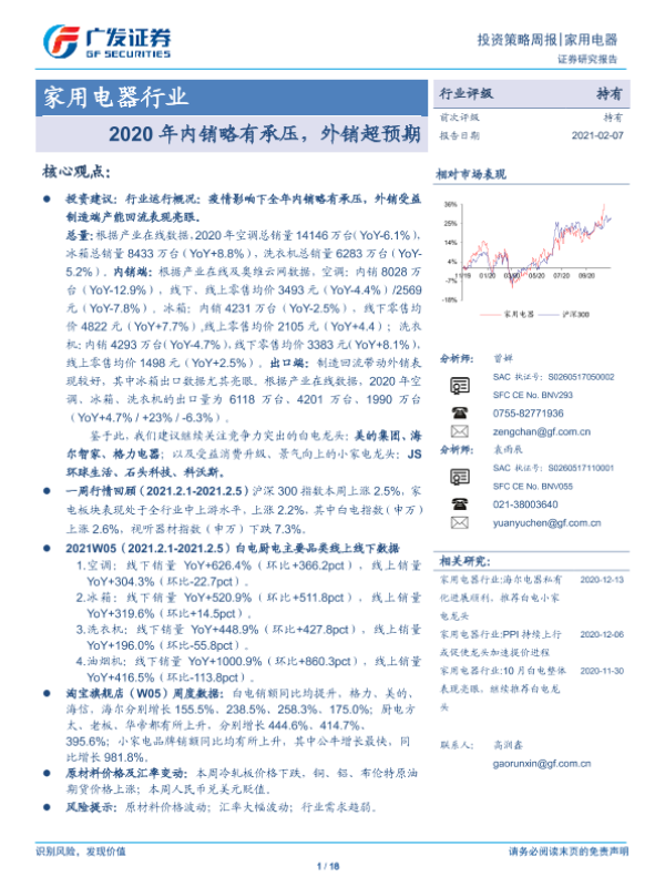 【广发证券】【20210207】家用电器行业:2020年内销略有承压,外销超预期-18页 行业研究
