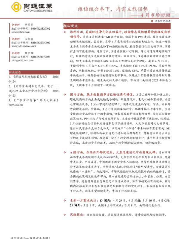 【财通证券】【20250427】4月市场回顾:维稳组合拳下,内需主线强势-12页 宏观策略