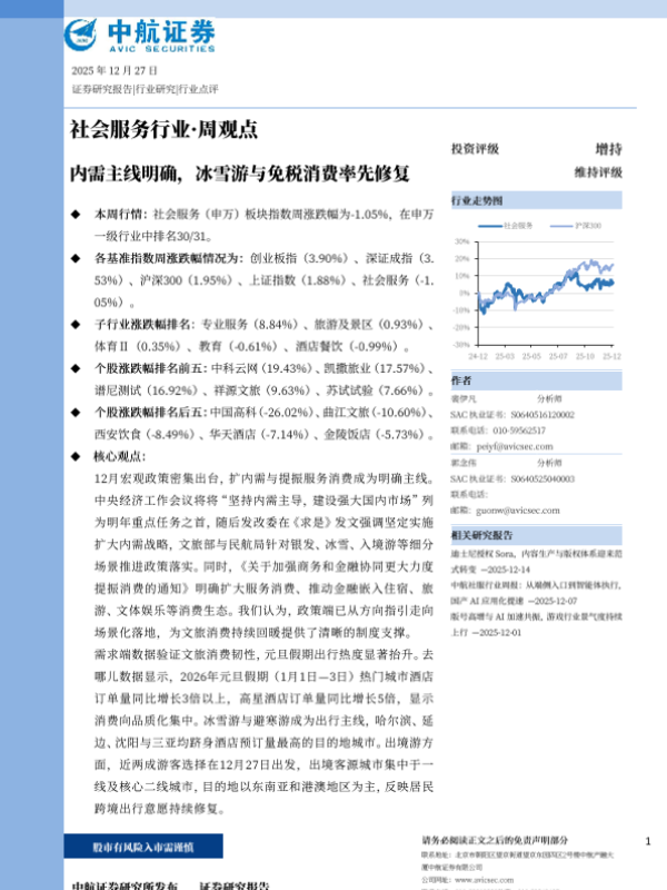 【中航证券】【202512】社会服务行业·周观点:内需主线明确,冰雪游与免税消费率先修复-9页 证券期货研究报告