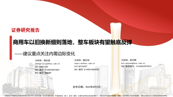 【中信建投证券】【20240805】汽车行业建议重点关注内需边际变化:商用车以旧换新细则落地,整车板块有望触底反弹-44页 行业研究