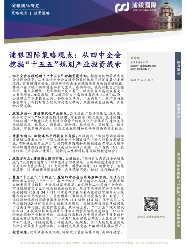【浦银国际】【202510】从四中全会挖掘“十五五”规划产业投资线索-9页 证券期货研究报告