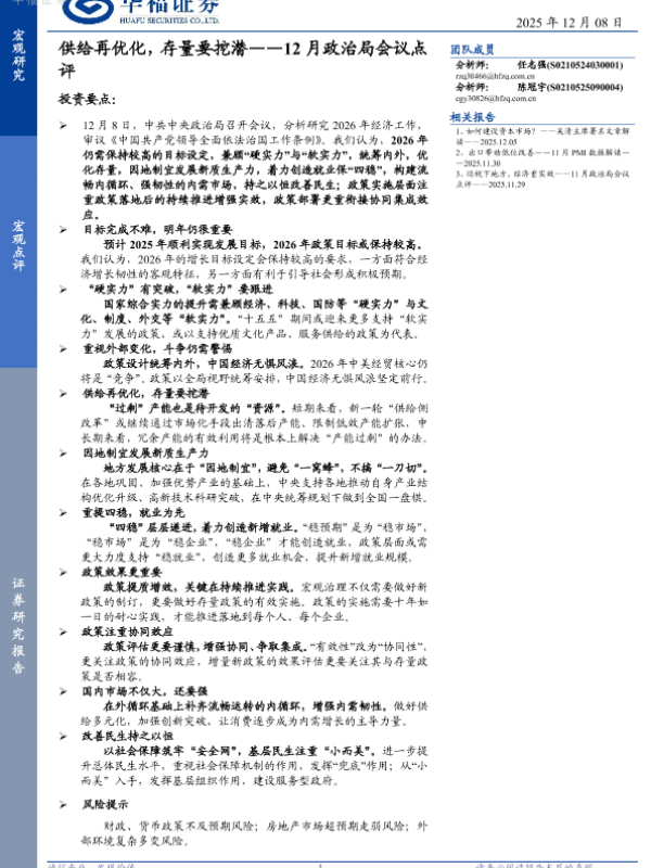 【华福证券】【202512】供给再优化,存量要挖潜——12月政治局会议点评-7页 证券期货研究报告