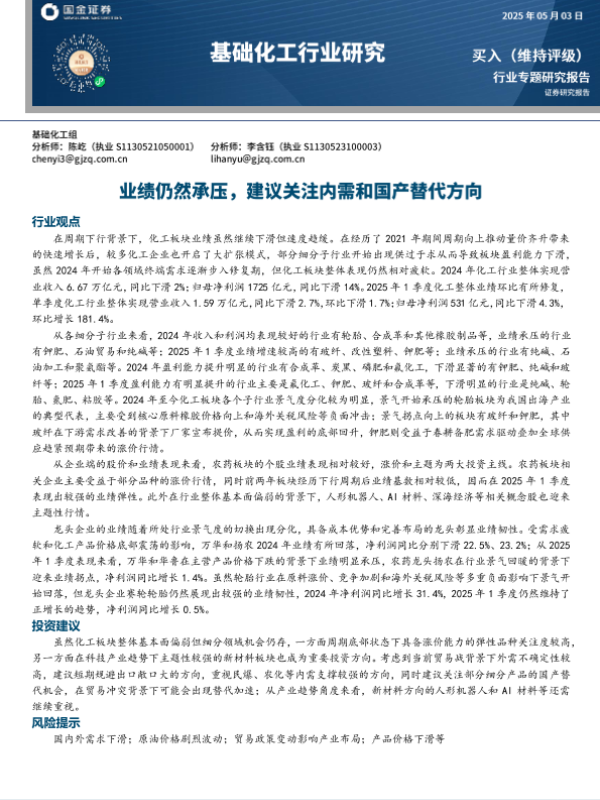 【国金证券】【20250503】基础化工行业专题研究报告-45页 行业研究