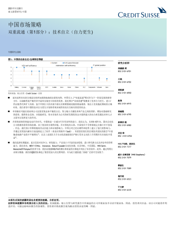 【瑞信】【20210120】中国投资策略之双循环:科技自力更生-65页 行业研究
