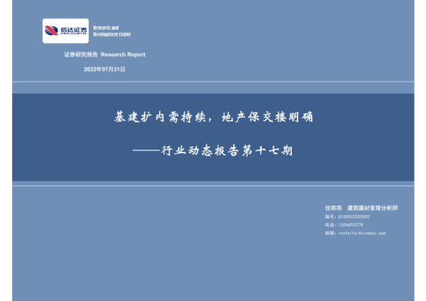 【信达证券】【20220731】建筑建材行业动态报告第十七期:基建扩内需持续,地产保交楼明确-30页 行业研究