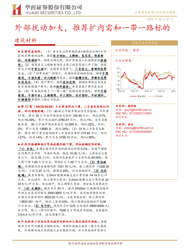 【华西证券】【20240427】建筑材料行业:外部扰动加大,推荐扩内需和一带一路标的-23页 行业研究