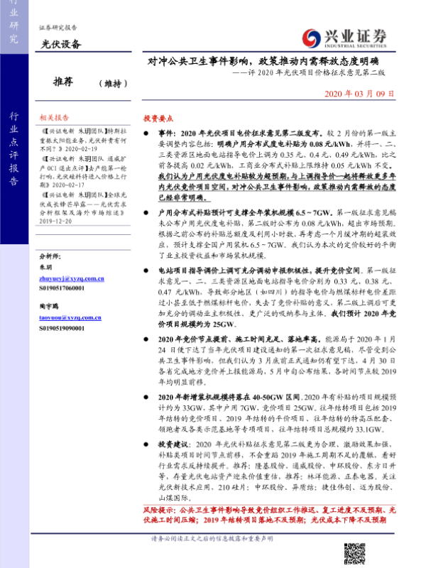 【兴业证券】【20200309】对冲公共卫生事件影响,政策推动内需释放态度明确——评2020年光伏项目价格征求意见第二版-8页 行业研究