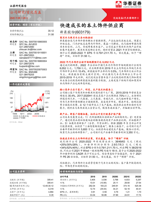 【华泰证券】【20200828】20200828-华泰证券-新泉股份-603179.SH-快速成长的本土饰件供应商-22页 行业研究