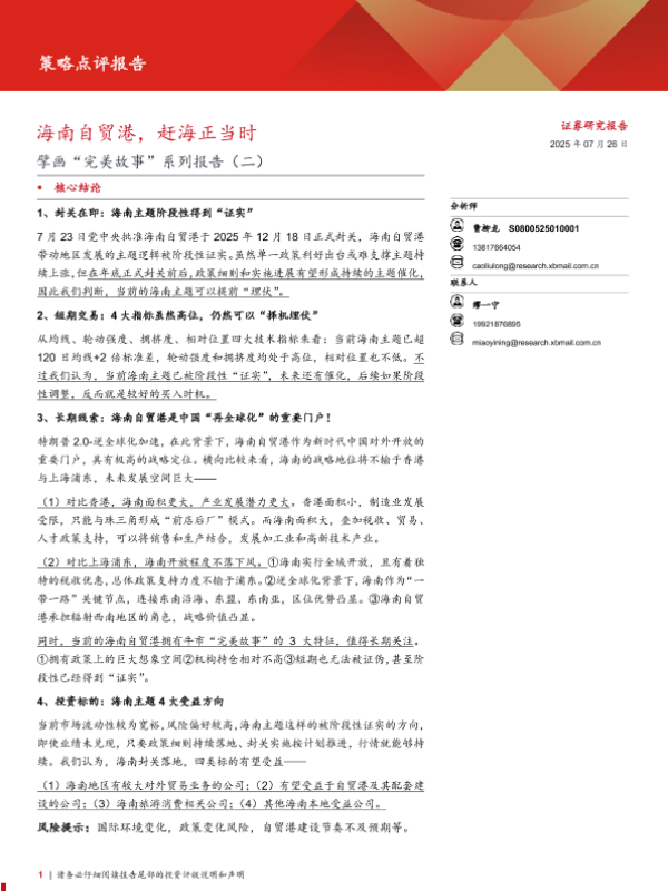 【西部证券】【202507】擘画“完美故事”系列报告(二):海南自贸港,赶海正当时-11页 证券期货研究报告