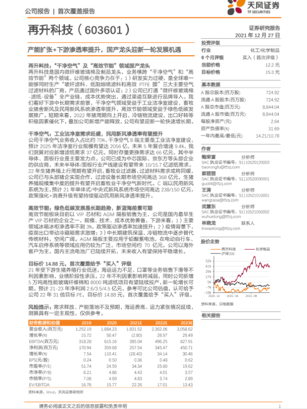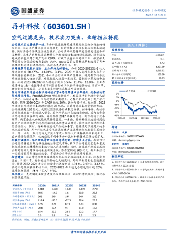 【国盛证券】【20221223】再升科技(603601.SH)空气过滤龙头,技术实力突出,业绩拐点将现-22页 行业研究