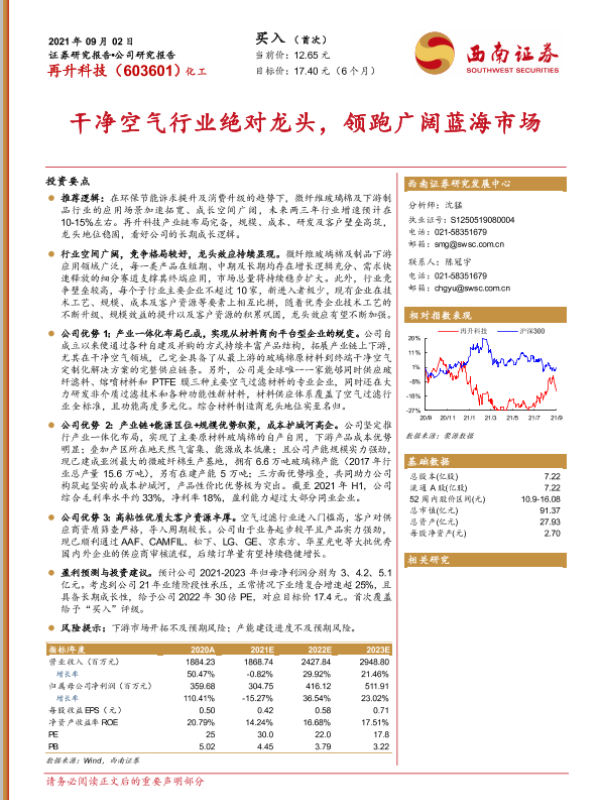 【西南证券】【20210902】20210902-西南证券-再升科技-603601.SH-干净空气行业绝对龙头,领跑广阔蓝海市场-42页 行业研究