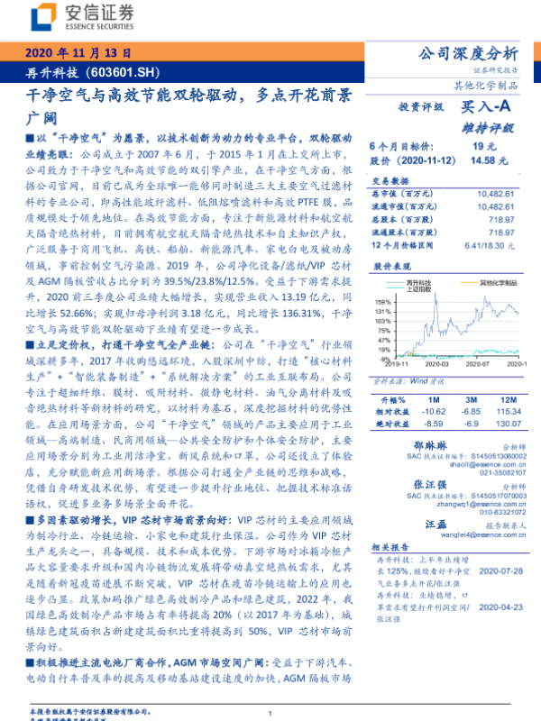 【安信证券】【20201113】20201113-安信证券-再升科技-603601.SH-干净空气与高效节能双轮驱动,多点开花前景广阔-37页 行业研究