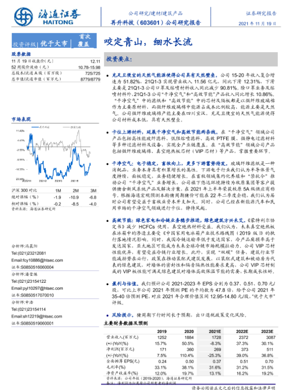 【海通证券】【20211119】20211119-海通证券-再升科技-603601.SH-公司研究报告:咬定青山,细水长流-26页 行业研究