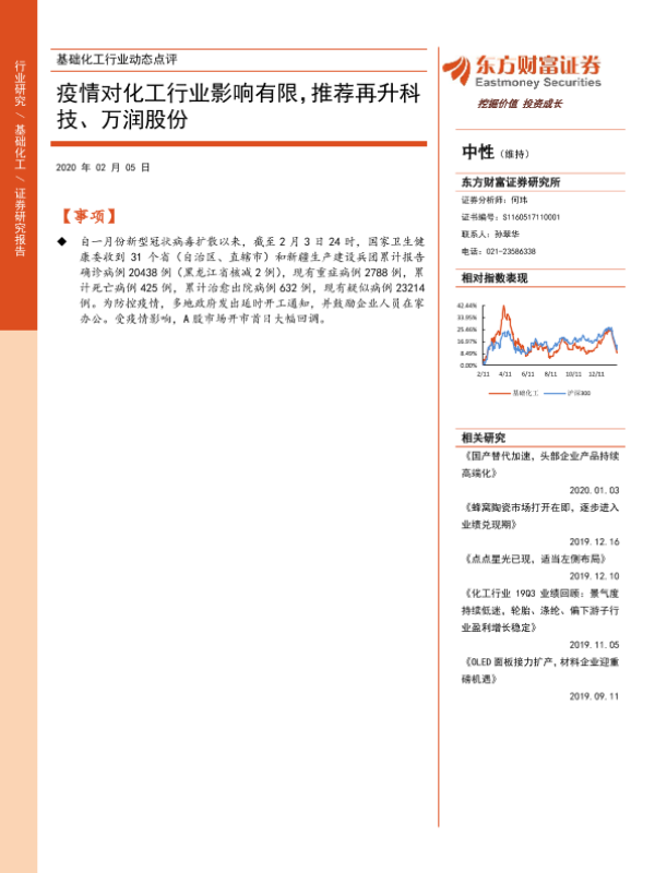 【东方财富证券】【20200205】基础化工行业动态点评:疫情对化工行业影响有限,推荐再升科技、万润股份-8页 行业研究