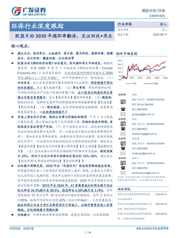 【广发证券】【20250817】欧盟目标2030年循环率翻倍-关注回收+再生-14页 证券期货研究报告