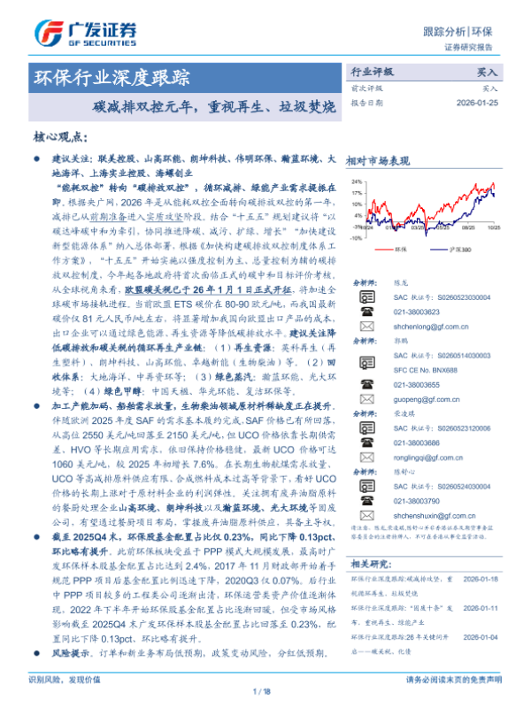 【广发证券】【2026】环保行业深度跟踪:碳减排双控元年,重视再生、垃圾焚烧-18页 证券期货研究报告