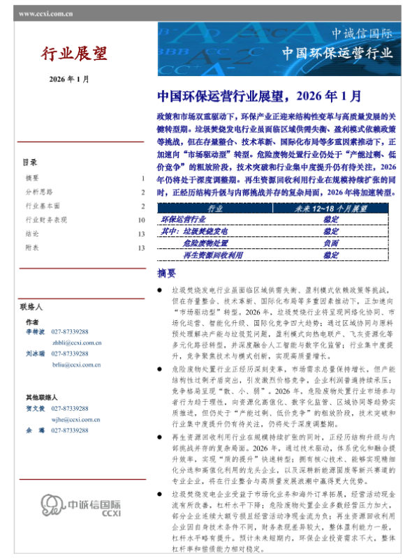 【中诚信国际】【202601】中国环保运营行业展望,2026年1月-17页 行业研究