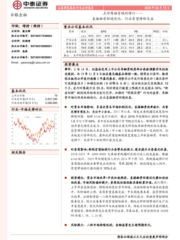 【中泰证券】【20200215】点评再融资规则修订——直接融资环境优化,行业有望持续受益-6页 行业研究
