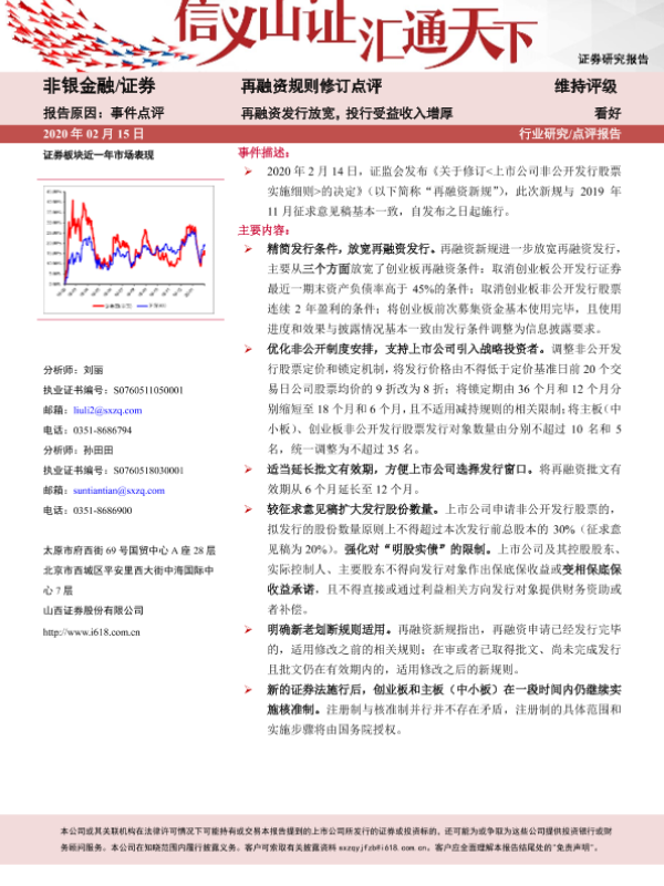 【山西证券】【20200215】再融资规则修订点评:再融资发行放宽,投行受益收入增厚-4页 行业研究