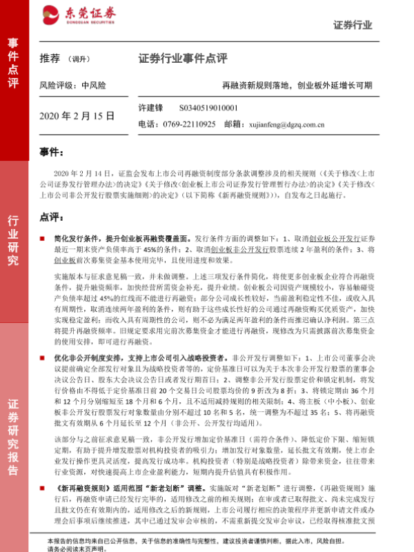 【东莞证券】【20200215】证券行业事件点评:再融资新规则落地,创业板外延增长可期-3页 行业研究