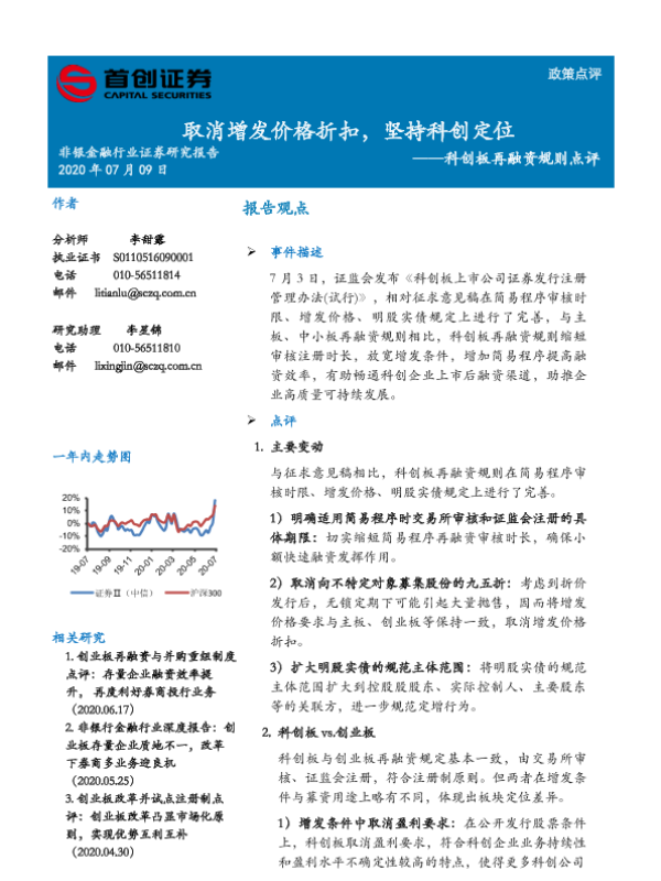 【首创证券】【20200709】科创板再融资规则点评-取消增发价格折扣,坚持科创定位-5页 行业研究