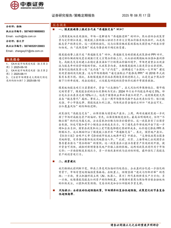 【中泰证券】【202508】煤炭股趋势上涨是否代表“再通胀交易”回归?-11页 证券期货研究报告