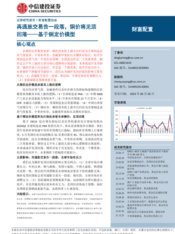 【中信建投证券】【20240605】财富配置动态:再通胀交易告一段落,铜价将见顶回落—基于铜定价模型-15页 行业研究