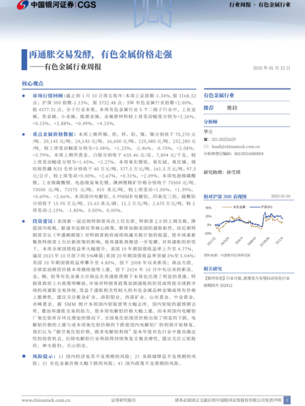 【银河证券】【20250112】20250112-中国银河-有色金属行业周报:再通胀交易发酵,有色金属价格走强-20页 行业研究