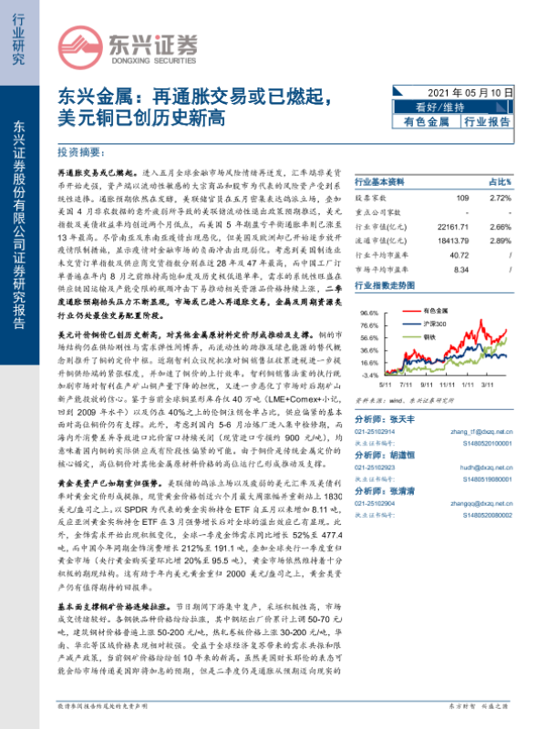 【东兴证券】【20210510】东兴金属:再通胀交易或已燃起,美元铜已创历史新高-25页 行业研究