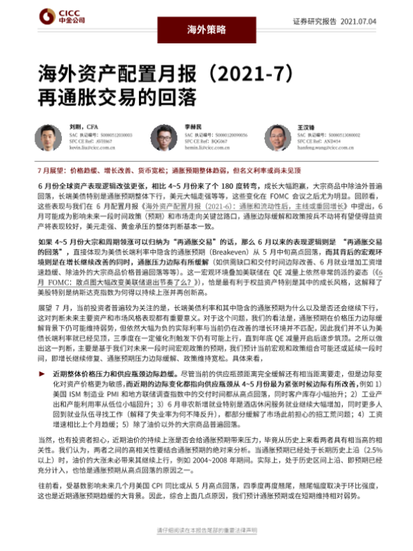 【中金公司】【20210704】海外资产配置月报(2021~7):再通胀交易的回落-29页 行业研究