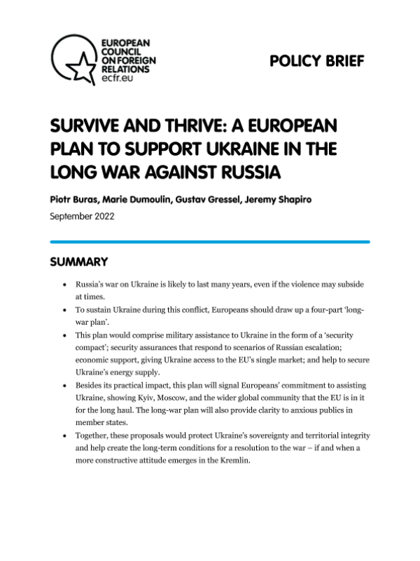 【欧洲对外关系委员会】【202209】生存和繁荣:欧洲支持乌克兰与俄罗斯长期战争的计划-18页 政策文件