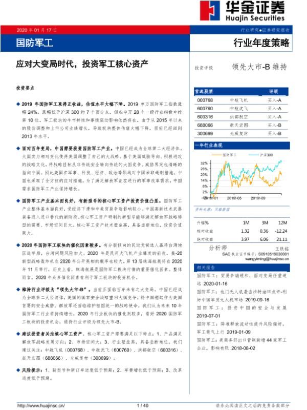 【华金证券】【20200117】20200117-华金证券-国防军工行业年度策略:应对大变局时代,投资军工核心资产-40页 行业研究
