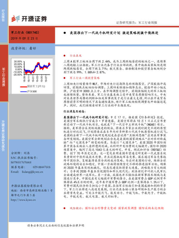 【开源证券】【20190923】20190923-开源证券-军工行业周报:美国推出下一代战斗机研发计划 激进策略刺激中俄跟进-13页 行业研究