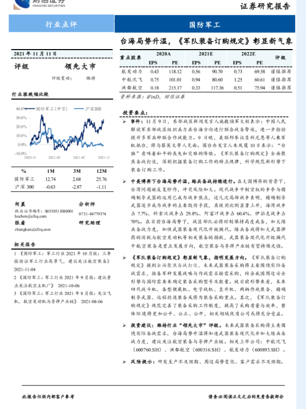 【财信证券】【20211111】台海局势升温,《军队装备订购规定》彰显新气象-2页 行业研究