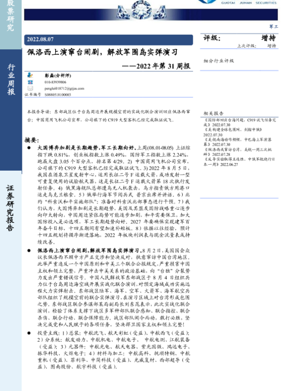 【国泰君安证券】【20220807】佩洛西上演窜台闹剧,解放军围岛实弹演习——2022年第31周报-13页 行业研究