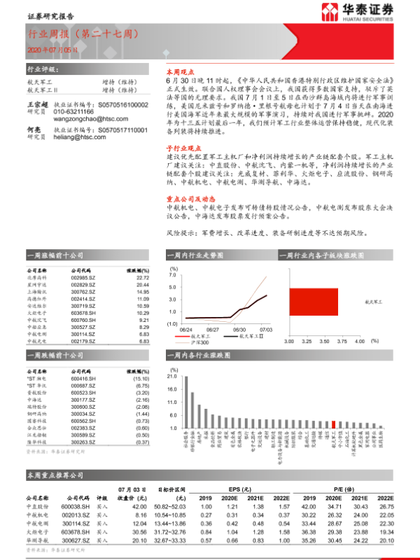 【华泰证券】【20200705】20200705-华泰证券-航天军工行业周报(第二十七周)-16页 行业研究