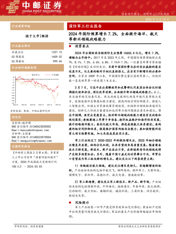 【中邮证券】【20240310】2024年国防预算增长7.2%,全面提升海洋、航天等新兴领域战略能力-17页 行业研究