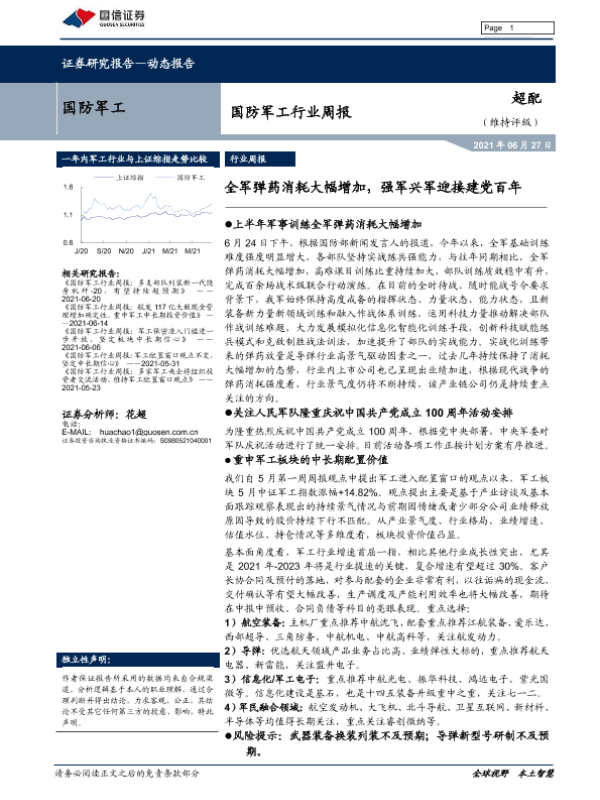 【国信证券】【20210627】国防军工行业周报:全军弹药消耗大幅增加,强军兴军迎接建党百年-14页 行业研究