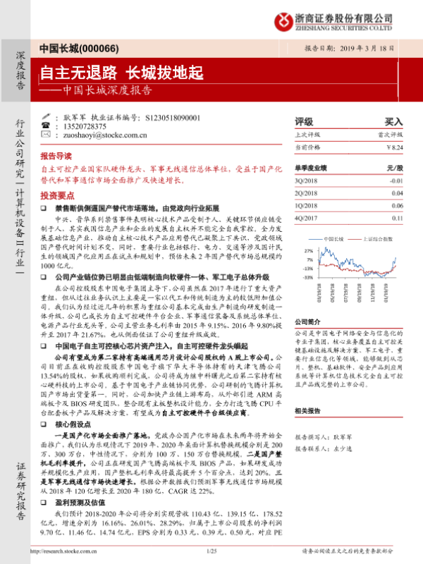【浙商证券】【20190318】中国长城深度报告:自主无退路 长城拔地起-25页 行业研究
