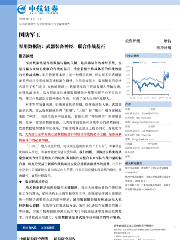 【中航证券】【20241118】国防军工行业军用数据链:武器装备神经,联合作战基石-31页 行业研究