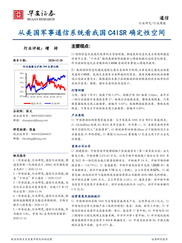 【华安证券】【20201220】20201220-华安证券-通信行业周报:从美国军事通信系统看我国C4ISR确定性空间-14页 行业研究